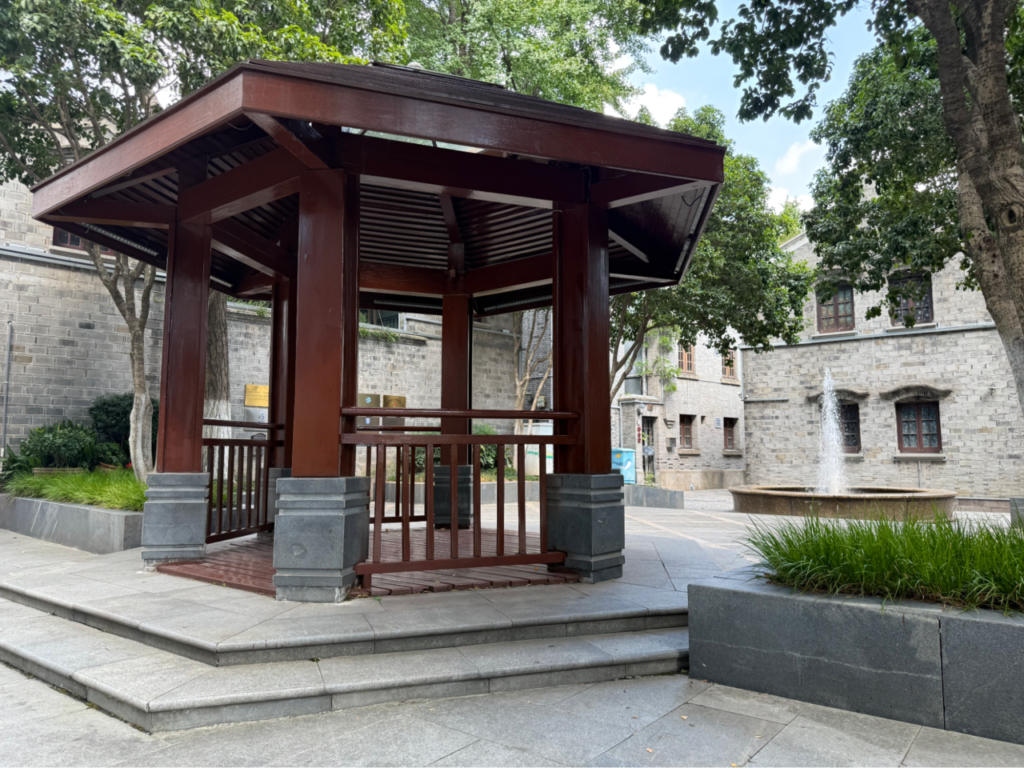 周辺には古い建物も多く残り、歴史的な面影を感じられる散策スポット。石造りの建築や小さな東屋が点在していて、昼間は静かに歴史を味わいながら歩けるのも魅力でした。