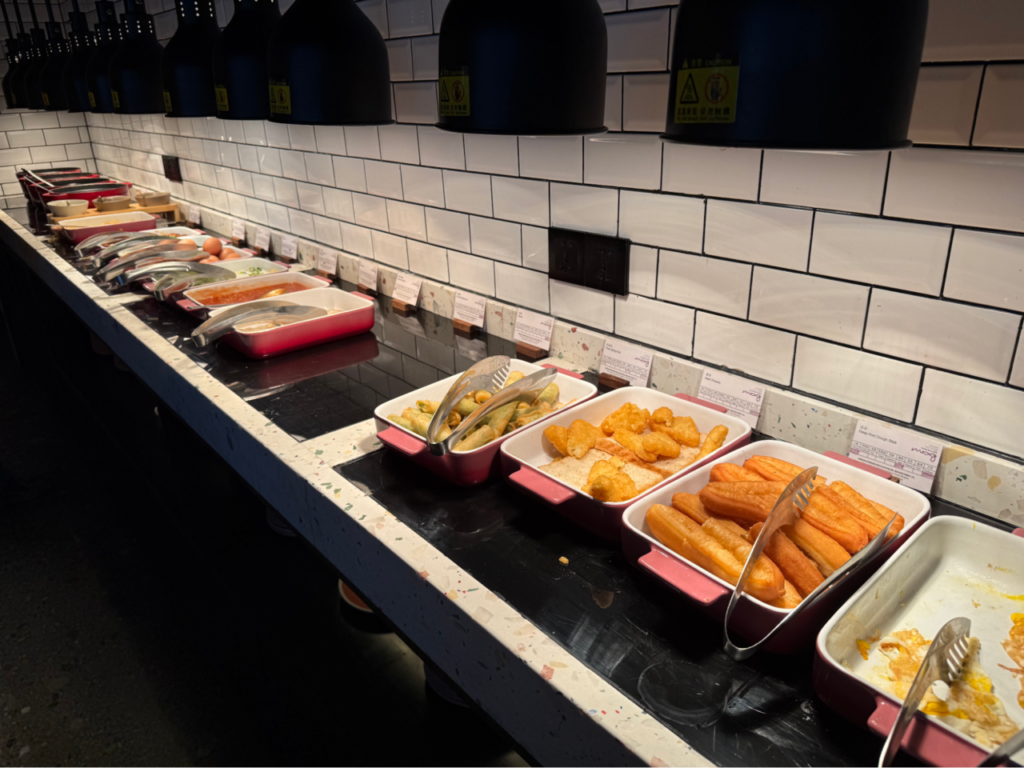 温かい料理は揚げ物から中華風惣菜まで幅広く揃い、軽く食べたい人からしっかり派まで満足できました。種類は多くはありませんが、一品一品が新鮮で美味しく、外国人でも食べやすい内容。混雑していてもスタッフの補充が早く、快適に利用でき、ライブ前の朝にしっかりエネルギーをチャージできました。