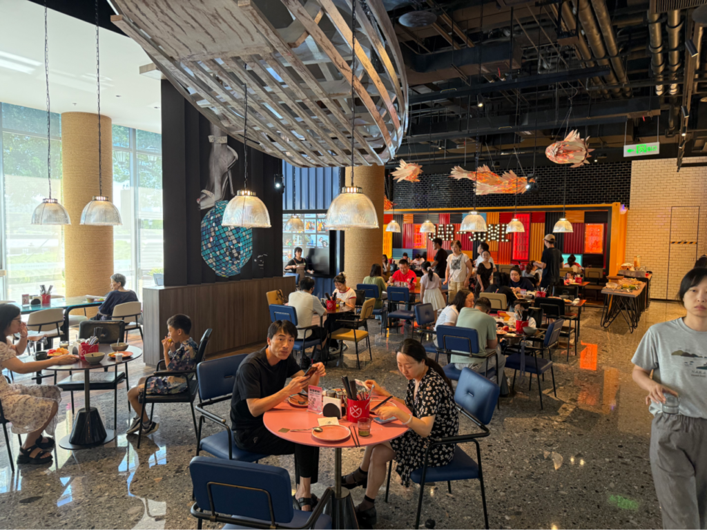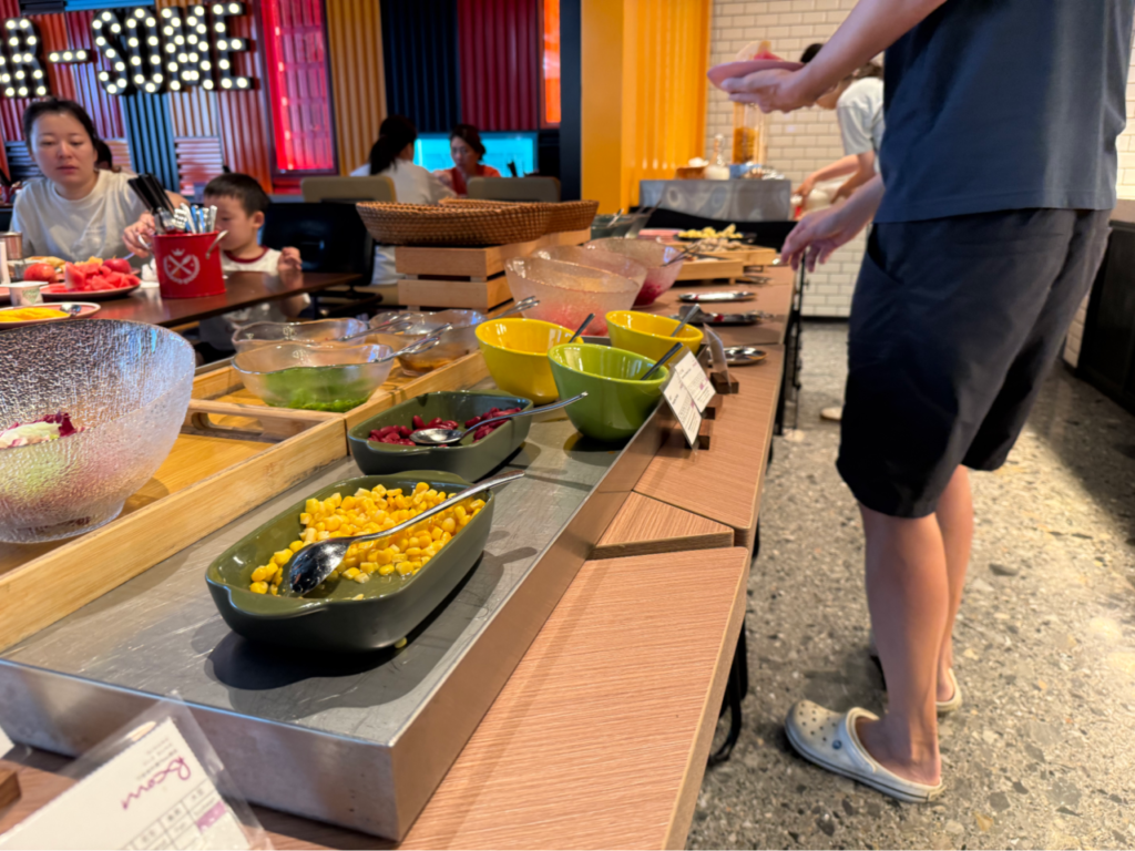 朝食エリアは人で賑わい、活気に溢れていました。
