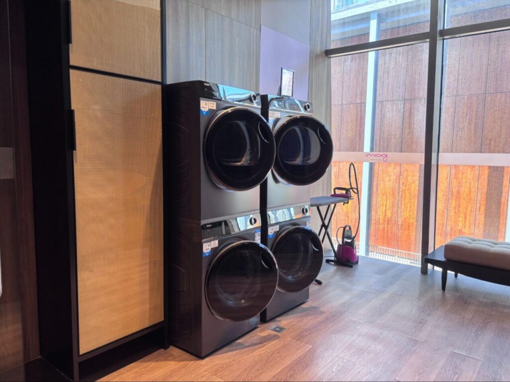 ランドリーは無料で利用可能。乾燥機と洗濯機がそれぞれ二つずつ設置されており、実際に使ってみても臭いが残らずしっかり乾燥できて、とても快適でした。さらにアイロンなどの貸し出しもあり、衣類のケアにも困りませんでした。