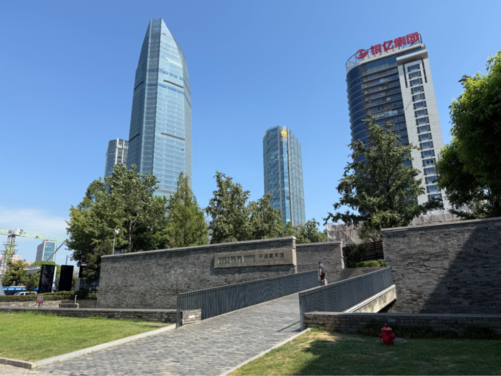 ホテルのすぐ隣には宁波美術館があり、アートに触れながら滞在を楽しむことができます。近代的な高層ビルが並ぶエリアにあり、都会的な雰囲気も味わえました。